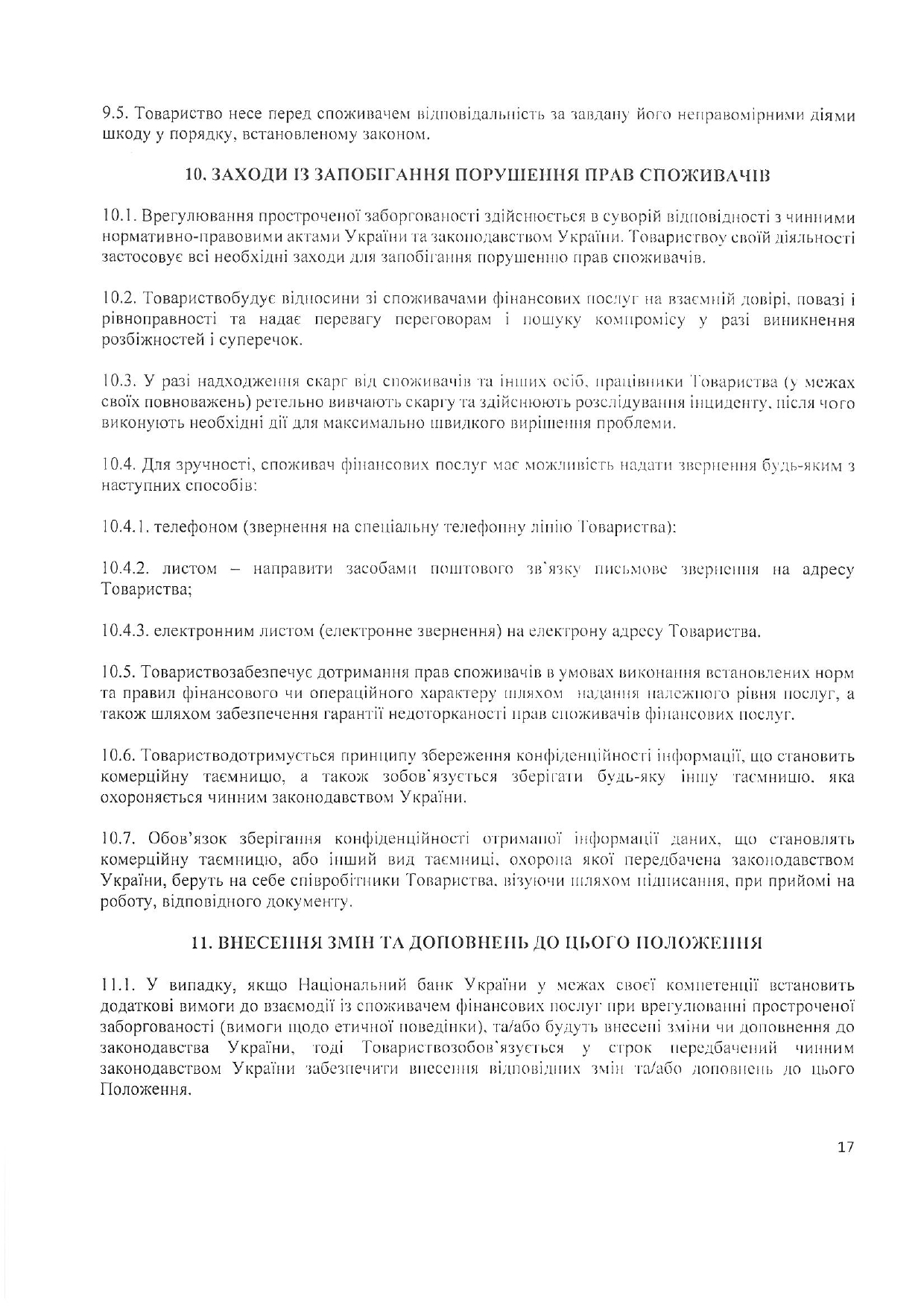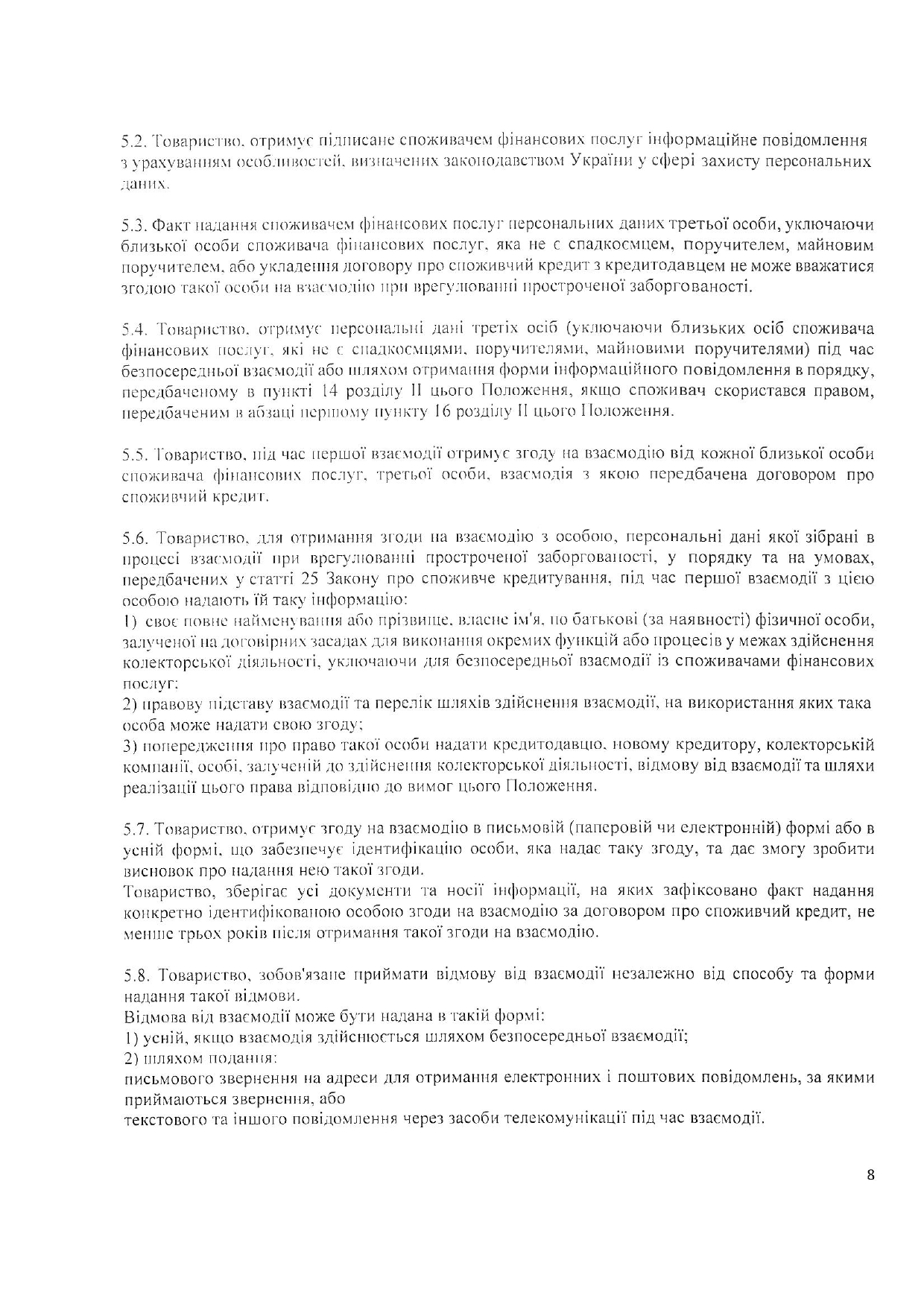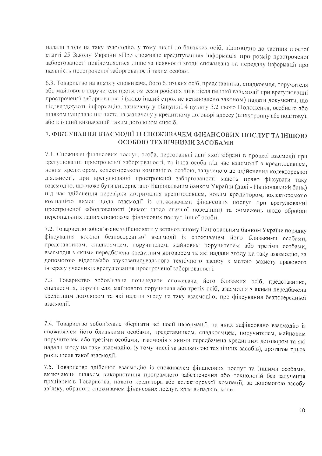 Положення про порядок взаємодії із споживачами фінансових послуг