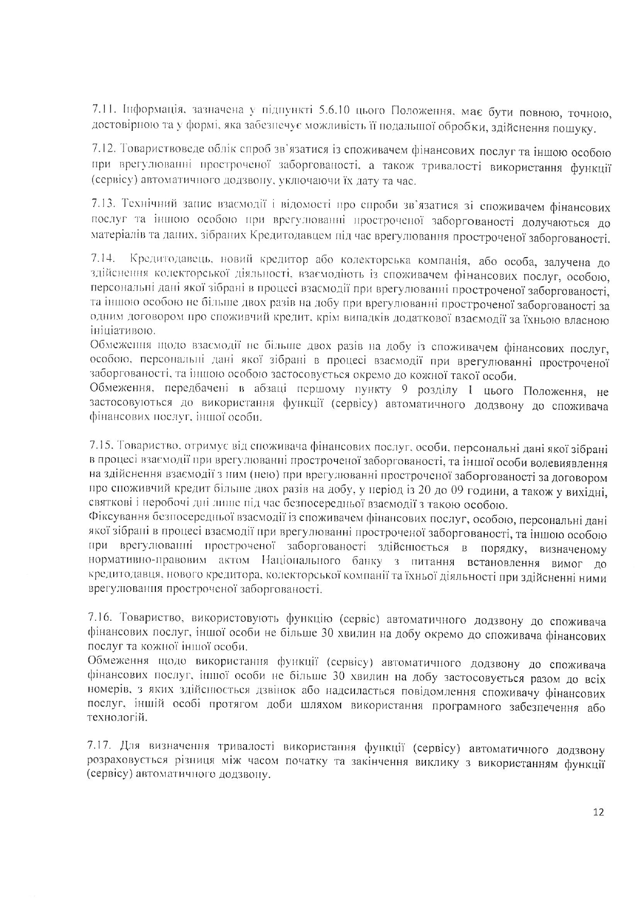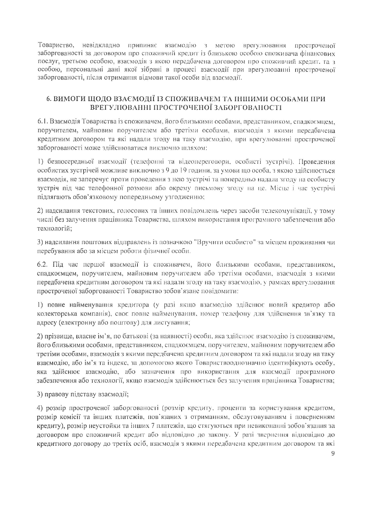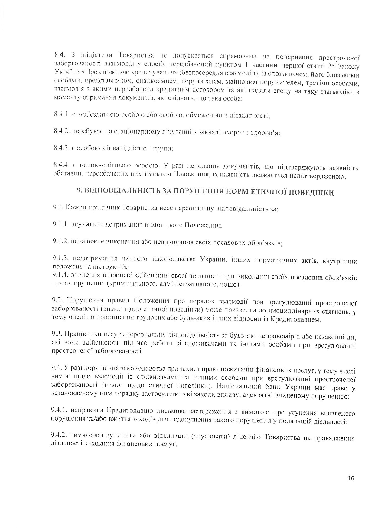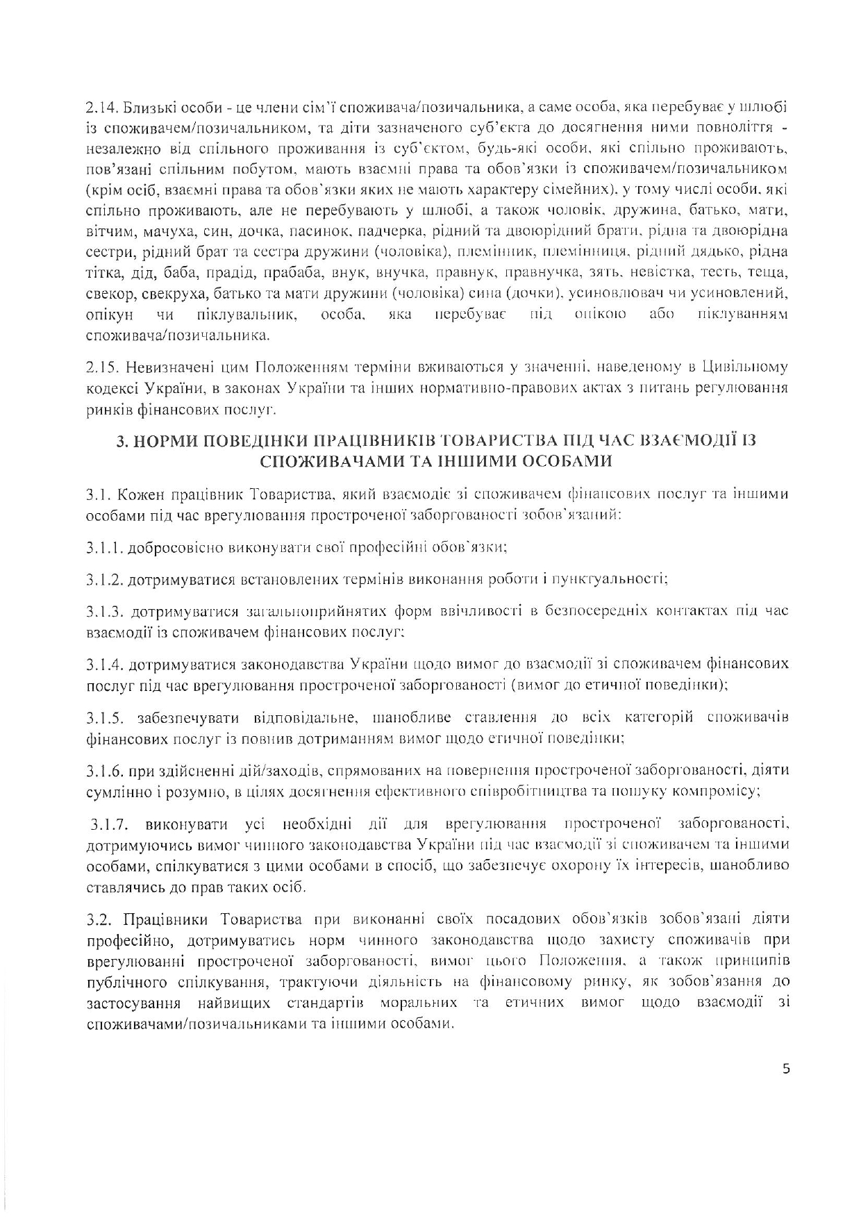 Положення про порядок взаємодії із споживачами фінансових послуг