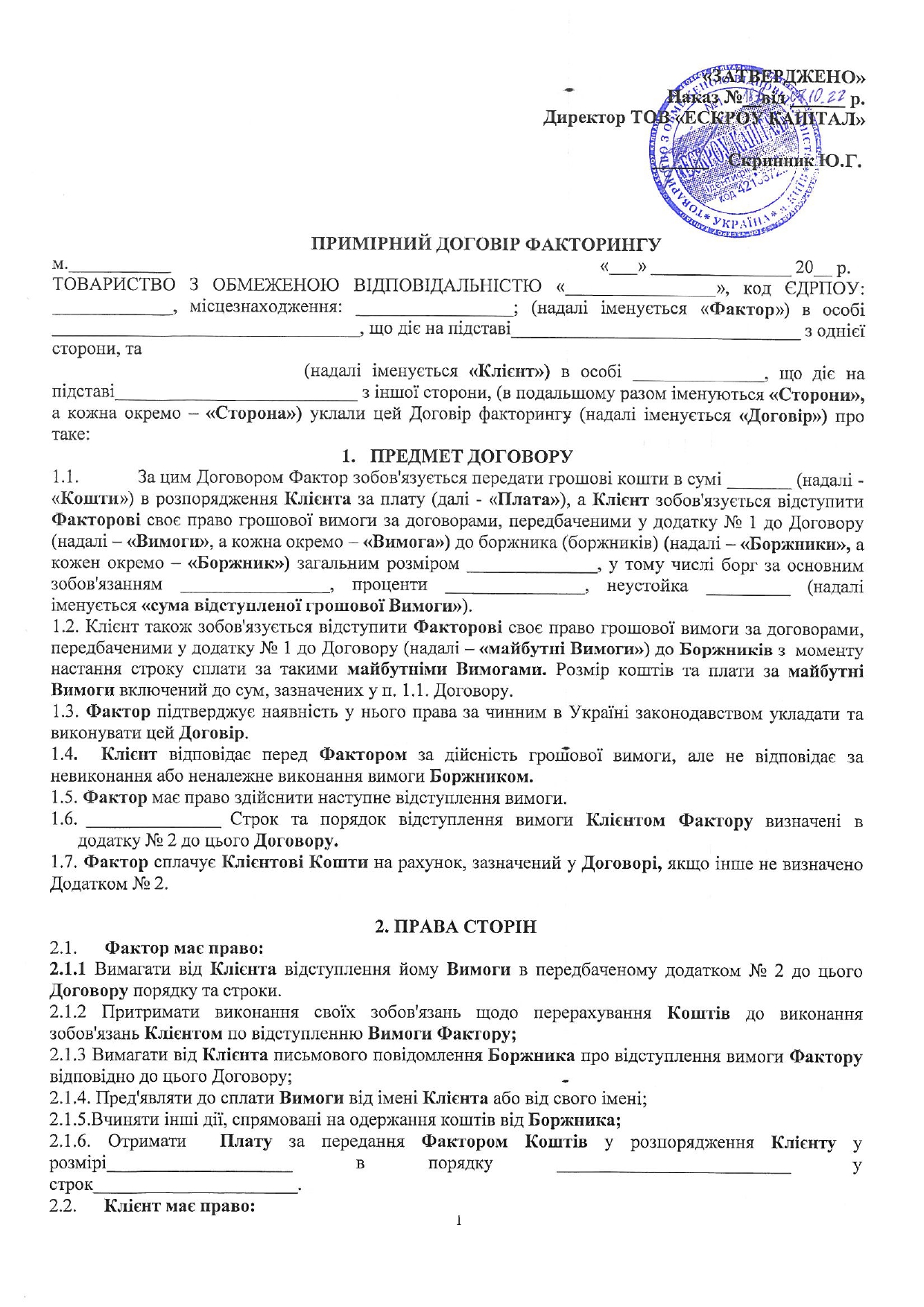 Правила надання фінансової послуги факторинг