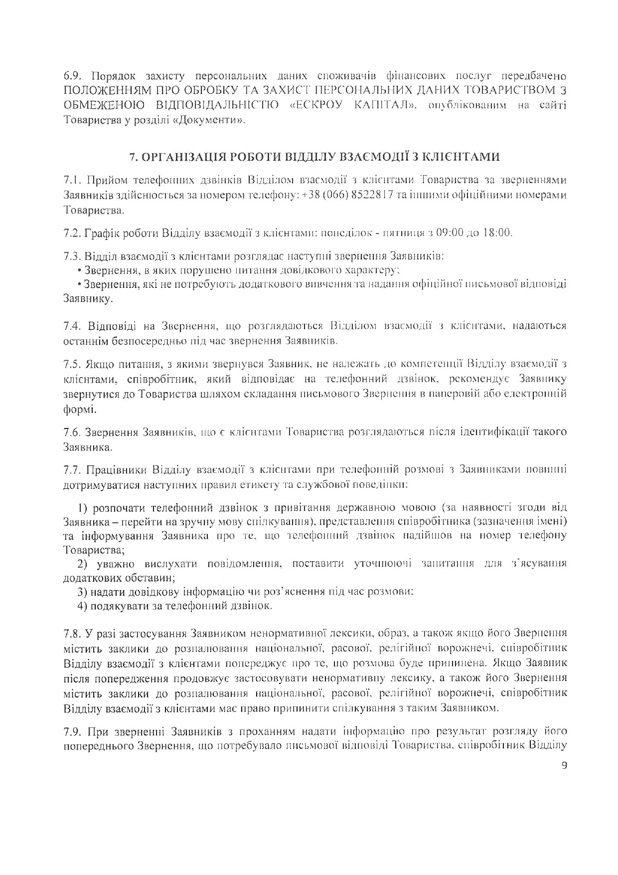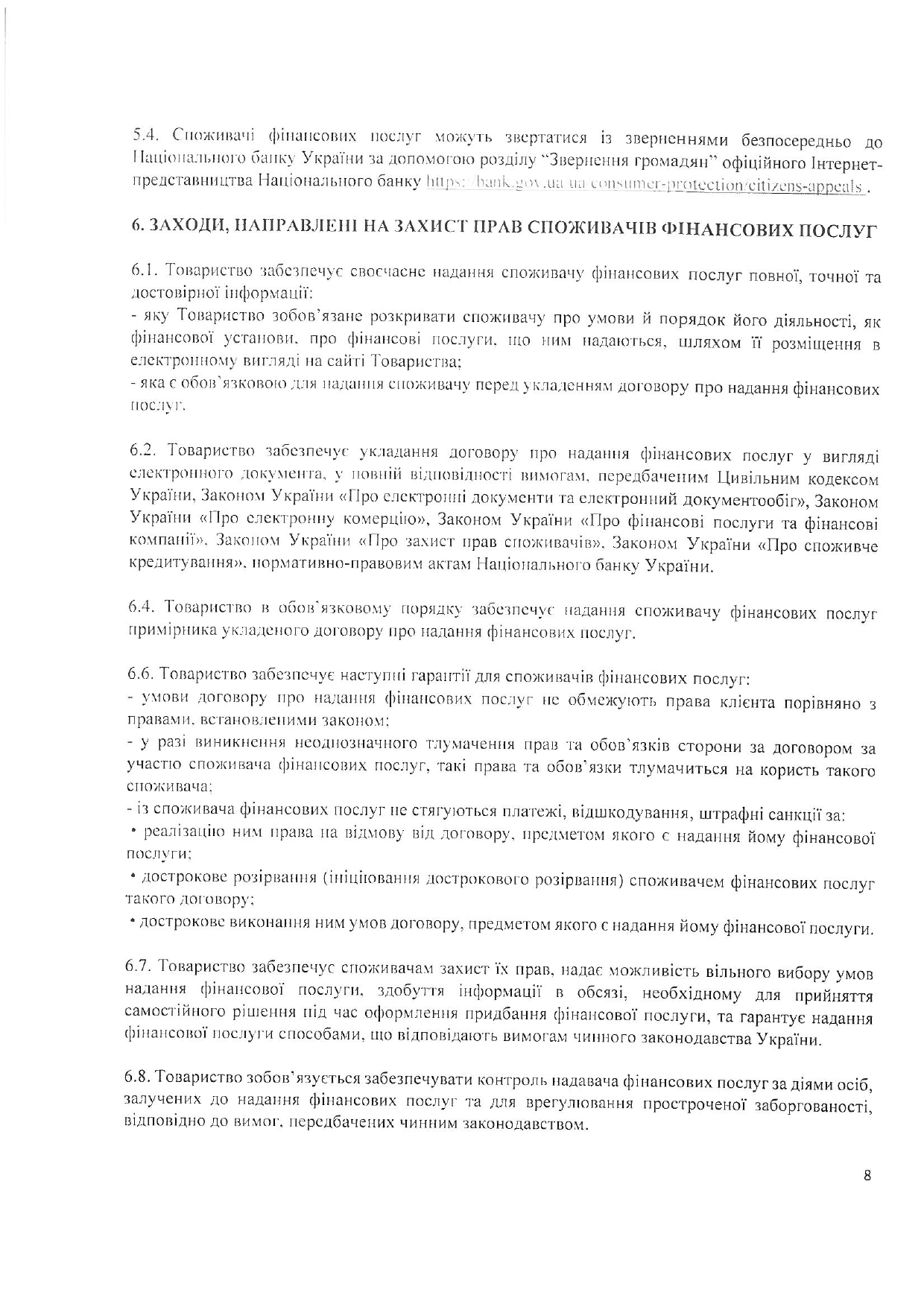 Порядок взаємодії із споживачами фінансових послуг